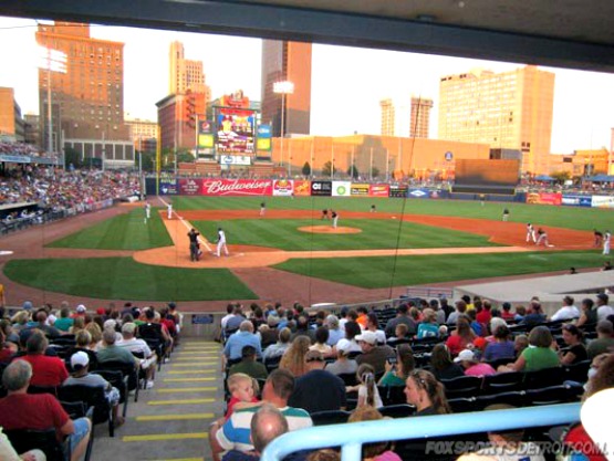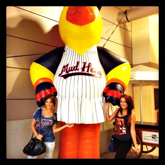 Fifth-Third Field–Toledo, OH: Last Saturday the Fox Sports Detroit Girls blessed Fifth-Third Field in Toledo with their presence (not to be confused with Fifth-Third Field in Dayton, Fifth-Third Ballpark by Grand Rapids, or Fifth-Third Bank Ballpark in Kane Country….my god…). The Girls were on hand to help root on the Detroit Tigers Triple-A affiliate and help support the military, who was being honored all week by the Mud Hens. It’s a pretty fair drive from the Canadian border straight down to Toledo, but if I would have known that the Girls were going to be there, we would have tried to make plans! My window of opportunity for the kids and I too meet them is running out quickly, with the Minor League regular season ending in less than a week. My only hope now is for the baseball Gods to smile upon me, with Lauren and Allison magically appearing at the West Michigan Whitecaps game this Sunday…our last outing of the 2012 campaign. My only other chance for removing the Fox Sports Detroit Girls from my baseball bucket list is if they make it to a Grand Rapids Griffins (AHL hockey) game this winter. The Girls were a lucky charm, too, as the Mud Hens beat the Louiville Bats 5-1.