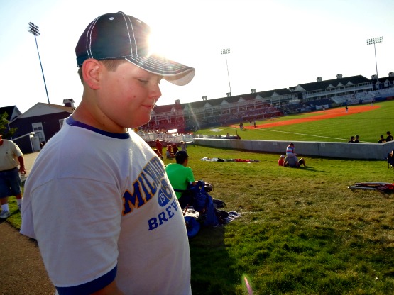 Wuerfel Park–Traverse City, MI: Here in TC, back on Family Fun Night. It was all about family, too, as my mom (the kids’ Nana) was able to make a rare appearance at the ballpark. The kids always enjoy the game better with their Papa and Nana…probably because they get spoiled. We opted for the lawn seats again, and Brian was happy to have plenty of playground time. After the game though, he was like: “I haven’t even watched much baseball yet! We can’t leave!” Anyway, this will be a short entry, as this was probably our last game of the season, unless we make it down for a playoff game. Not much excited happened, other than relaxing and watching baseball. Lily and Trevor patrolled the foul area a bit, but nothing hit our way. It’s didn’t take as many pictures either, but just wanted to soak it all in until next year.