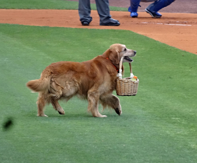 We did get to see Jake the Diamond Dog, however, as his doghouse was right in front of us. He brought flowers to a fan in the front row, brought some water to the umpires, and served as a batboy, er, batdog, for an inning.