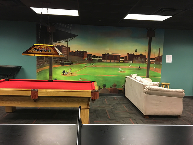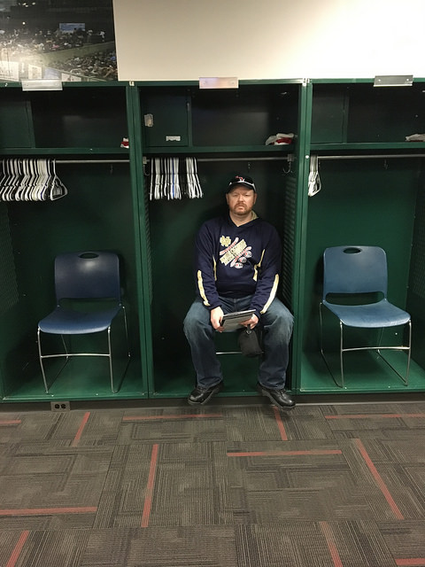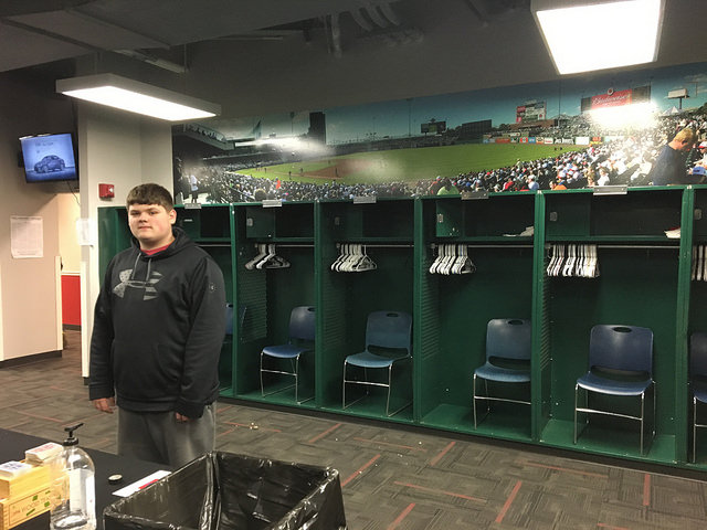 After we finished up our lunch, we went into the bowels of Louisville Slugger Field to check out the Bats locker room and clubhouse. Both were modest, but they looked like nice facilities for sure.