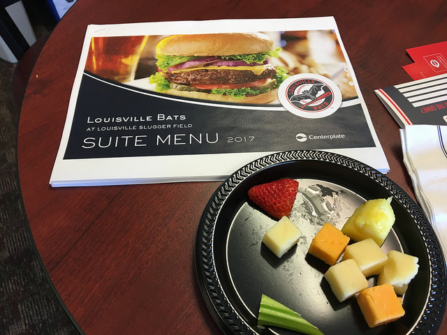 After our rest in the dugout, we took a lap around the outfield. It’s always nice to be on the field, too… We ended our excursion by heading up to check out one of the suites looking over the ballpark. All I can saw is, I’ve seen the suite life, and it is good. If or when I win the Powerball, I now know my first purchase will be to secure one of these suites for my friends, family, and I to enjoy the games. We were able to sample some food up there, also, and it was awesome! Oh, well, I can dream, anyway… We have plans to be back here when the Cincinnati Reds visit town for an exhibition. Please help me pray for good weather!