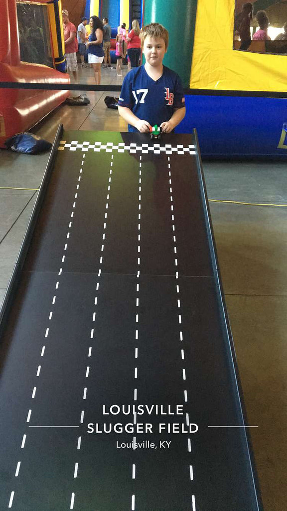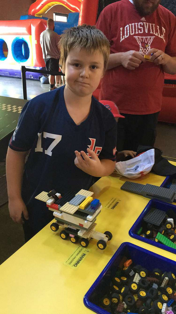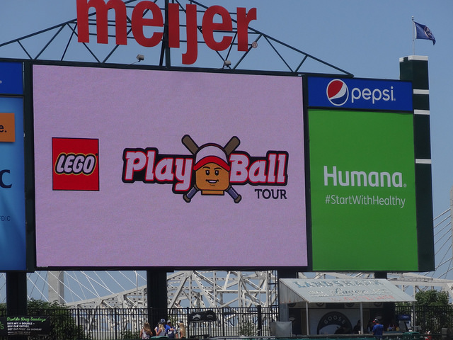 Louisville Slugger Field-Louisville, KY: Another gorgeous day here in the ‘Ville, and another Bats game for Brian and I to enjoy. Last weekend the Legos Play Ball Tour was in town for some fun. Brian was able to make some cool Lego vehicles and the kids had the chance to race them, also!