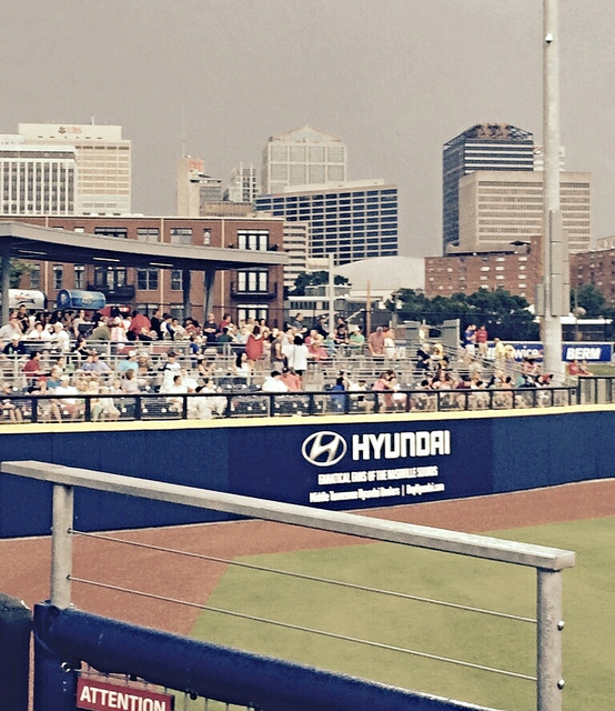 First Tennessee Park-Nashville, TN: Over the weekend my best friend was lucky enough to take in a couple of games down in Nashville. He was also nice enough to supply me with some photos of his experience, and it definitely looks like a great place to see a ballgame. The scoreboard looks especially unique, and fits into the theme of Nashville so much, and just one of the reasons I love minor league baseball. The Sounds hosted the Oklahoma City Dodgers both nights he was there, winning 3-2 on Friday, and 7-2 on Saturday. The top photo, and the one below are from Friday nights game.