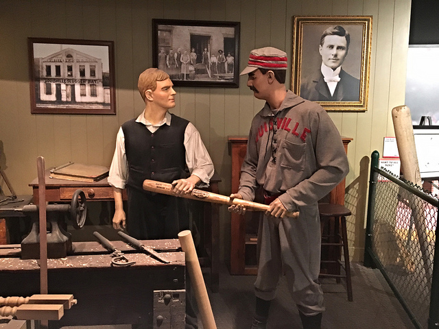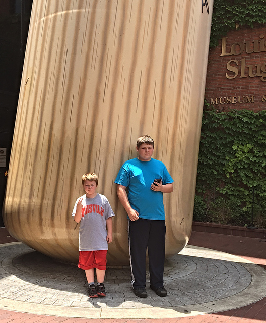 We arrived, and got into the factory tour right away. They don’t allow any photography during the factory portion, but it was interesting seeing how the bats were made. Trevor and I had been here before way back in 2009, but it was still fun for him to see it all again, and understand it now that he’s a bit older. And of course Brian ate it all up, and loved seeing the whole bat-making process.