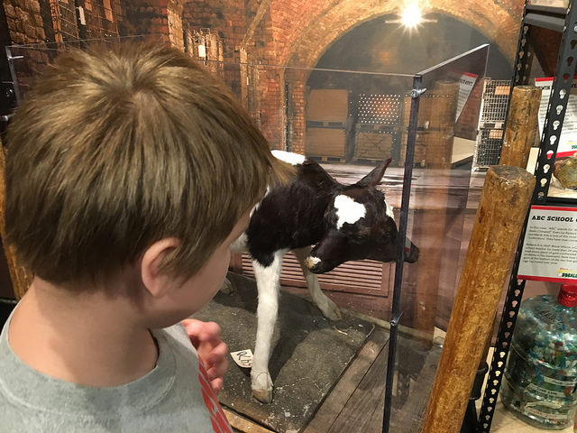 Next we checked out the Ripley’s Believe it or Not Oddball exhibit, which is here in Louisville temporarily. It contains some cool stuff, but not everything in it pertains to baseball. The photos are of Yankee Stadium made of toothpicks, and a real ‘double-header’, a two-headed calf. I highly recommend this factory tour and museum for any baseball fan in the area. It’s definitely worth going out of your way for, also, as it’s one of the best baseball places I’ve been to, second only maybe to the actual Hall of Fame. The history of the company is so rich, especially all of the great players who have swung Louisville lumber. I’m glad the museum and I could celebrate our birthdays together!