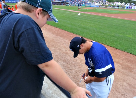 Fifth-Third Ballpark–Comstock Park, MI: It’s that time of year again, when myself and the little nerf-hearders head down to Star Wars Night. This year, we were back at the Fifth-Third Ballpark, with the Whitecaps as our host. Despite the weather report calling for rain, it all held off and it was a beautiful night. The kids were able to meet all of their favorite Star Wars characters, and some of the guys in the suits were pretty darn funny. They kept the sold out crowd entertained until the game started, and were more than happy to pose for pictures for the kids. This was one of the best Star Wars nights we’ve been too so far. We tried for some Whitecaps autographs, but got very few as the players didn’t walk by the fans due to the Star Wars guys.