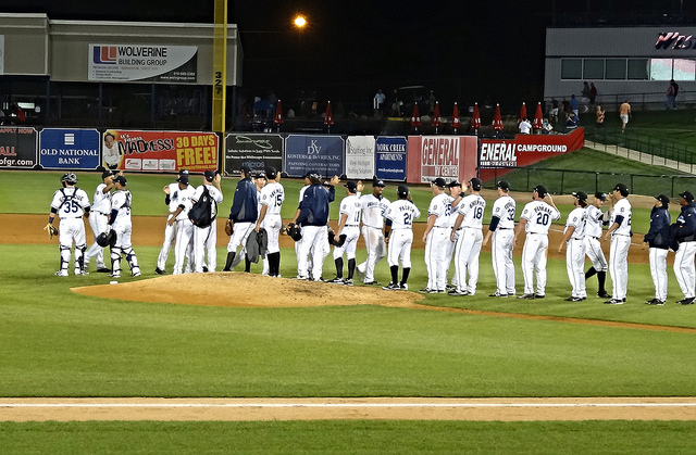 This was a great experience to be able to be at this game. Also fun when your team wins and you can high-five perfect strangers all around you and celebrate as fans. Good time for my dad and I to spend together, too, as baseball always goes best with family. This game tied the series at 1-1, but now as I’m posting this it’s tied at 2-2 with the fifth and final game tonight in Cedar Rapids. Win or lose, this was a fantastic season for the Whitecaps. They were an underdog team all season, and manager Andrew Graham has done a great job. Already looking forward to Minor League Baseball in 2016! Final: Whitecaps 4, Kernels 1.