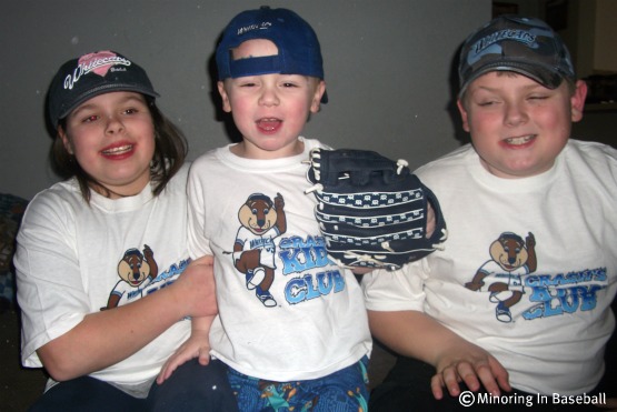 Over on MiLB.com, the Mascot Mania is in full force, with ever fuzzy animal, alien, or funny looking man-thing represeting a Minor League franchise fighting for mascot supremecy. The kids and I have encountered and have been entertained by some great ones on our travels, and here are some of our favorites. Keep in mind, the list will only consist of the mascots we’ve actually had the pleasure of meeting or seeing. This list was also a lot harder to put together than you’d think, trying to narrow so many fun entertainers down to just nine. Ok, then, let’s see where they stand: