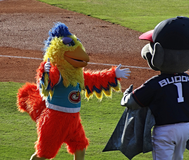 Ok, more of the Famous Chicken! He puts on a fantastic show, and if you’ve never had the pleasure of seeing him perform, I highly recommend it. He’s had many years to perfect his craft, and does some of the greatest skits I’ve seen at the ballpark. Some of them have the umpires and players involved, also, and it’s so much fun. I think the fact that Ted Giannoulas has played the one and only Chicken since 1979, adds to the aura of one of the first, and the greatest, mascot in history. Every time he’s on the field, he has the fans attention at all times. You just never know what this guy will do next.