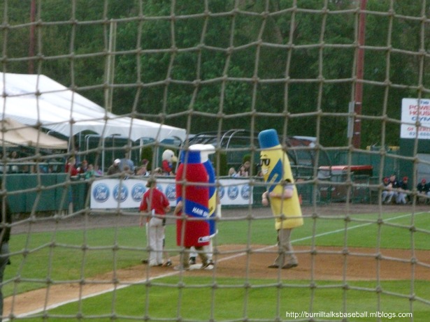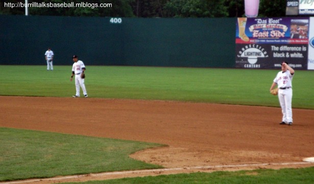 We had a really nice drive from Boston down to Connecticut. The weather was beautiful..until we got to New Britain, and it starting raining and lightning. I’m thinking, ‘Wow..here we go again’. Lucky for us the rain finally stopped, and the game between the Rock Cats and the Fisher Cats would take place. This would be our third Eastern League game on this trip, and our second time watching the Fisher Cats. If you’re planning on attending a game in New Britain, though, I advise you to leave plenty of time before the game starts. It took us almost forty minutes to get off the highway and into the parking lot. They have the most inefficient method of parking cars I’ve ever seen at a ball park. By the time we got into the stadium, the game had already started, which, along with the impending rain, put me in a sour mood. We got our shopping done and found our seats, which were pretty good. The weather again must have scared off a lot of fans, because the crowd wasn’t all that huge, but better than the other games we were at. New Britain Stadium was a nice place to watch a game, and I can’t imagine there is a bad seat in the place. It really didn’t seem as fan friendly as the other parks we’ve been to, either. Being in New England, maybe the fans aren’t too excited about the Rock Cats being a Minnesota Twins affiliate, but it seemed like a dull crown for a Friday night. I go again if I was in the area, but would rather catch a game in Manchester or Portland if given the choice. Final Score: Fisher Cats 6, Rock Cats 2.
