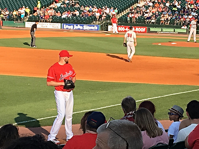 It was another hot day in the ‘Ville, as Trevor and I settled in, but it was an entertaining back-and-forth ball game. The Bats took a 1-0 lead in the first, as Scott Schebler hit a towering dinger into the left field stands. The PawSox battled back, however, tying the game in the third, and then hitting a home-run of their own to take the lead. It was the Bats turn to regain the lead now in the fifth, on a Juan Perez RBI double, and a Jermaine Curtis home run. On the mound, starter Stephen Johnson went five innings, giving up two runs on four hits, while striking out three. Surprisingly, it was relief pitcher Jumbo Diaz who took the loss, giving up two runs on three hits in one inning of work. Diaz had a franchise record going of 35 2/3 consecutive innings without giving up a run snapped. Well, aren’t we just good luck… Making a rehab appearance was Michael Lorenzen, who pitched a scoreless ninth inning giving up no and striking out two. FINAL: Bats 4, PawSox 5.