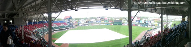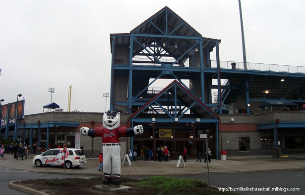 Our 2011 adventure started out in Pawtucket, home of the International League’s Red Sox, or PawSox. I really liked McCoy Stadium, as it’s a throwback to the more classic ballparks. Walking through the gates at McCoy is like taking a step back into time. The fans and staff are extremely friendly, and are more than happy to talk about the history of the stadium and the team. Some of the older staff members had some great stories. With the rain delay, we had plenty of time to explore the ballpark and get our shopping in also. My favorite park was the mural of my favorite player as a kid, Mark ‘The Bird’ Fidrych. The ballpark has pictures from all sorts of historic events that have taken place there, especially the longest game in pro baseball history that lasted 33 innings. Despite the fact that it had not been raining for some time, the game was called and we missed our first game to rain in the seven-year history of our trip. Some of the fans thought that the teams just wanted to hit the road early, as they played in worse weather the two previous nights. Definitely disappointing, but you don’t have to see a game here to realize how special the ballpark is, but I’m sure since the PawSox were playing the Yankees, the atmosphere would have been great.