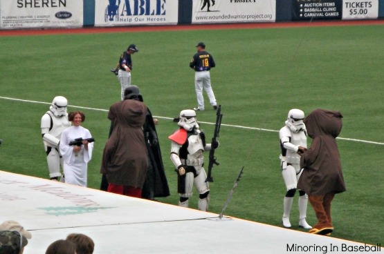 The Star Wars characters also had a little parade around the infield to show themselves off a bit, and members of the Galactic Empire threw out the first pitch of the game.